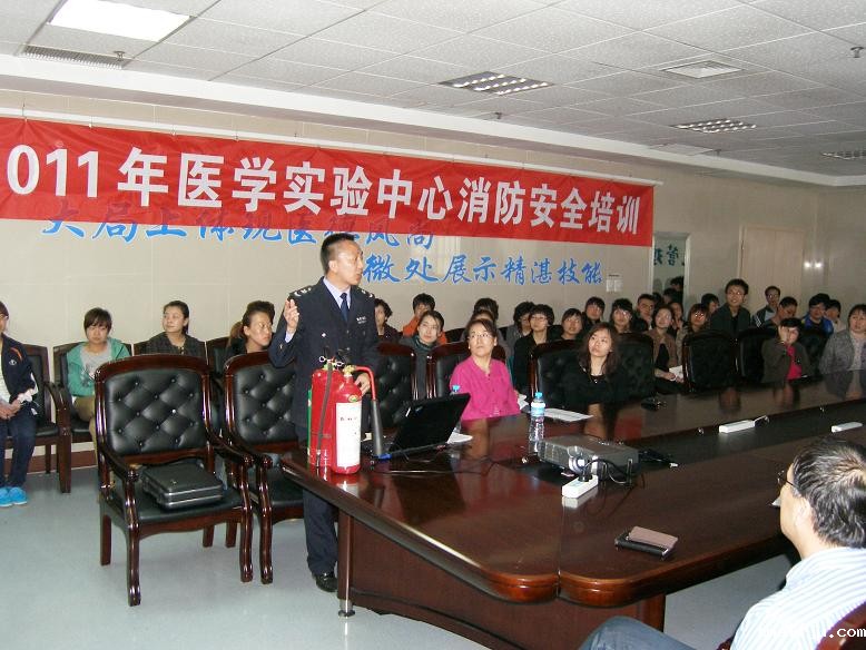 2011年3月30日下午,伟徳1946邀请自治区消防总队民安防火知识宣教中心薄教官为全科100多名工作人员进行消防安全知识培训。